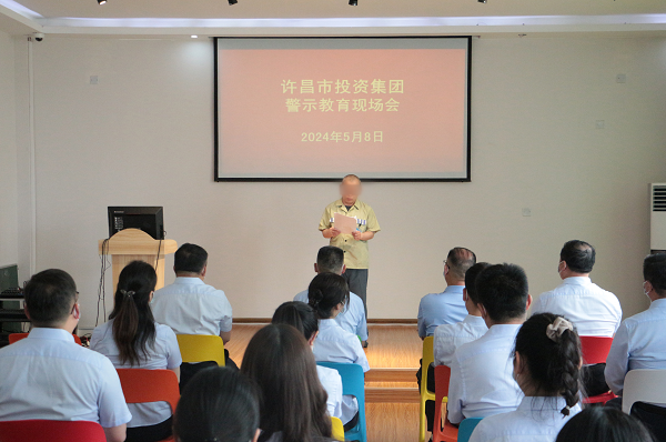 为深入学习贯彻习近平总书记关于党纪学习教育的重要讲话和重要指示精神,保证党纪学习教育取得扎扎实实的成效。5月8日下午,市投资集团领导班子成员、总部中层以上干部、新提拔重用年轻干部、各支部书记和子(集团)公司领导班子成员等共计40余人赴许昌监狱开展警示教育活动,以现场教学方式教育广大党员干部职工树牢纪律观念和规矩意识,筑牢拒腐防变思想防线。  在许昌监狱工作人员的带领下,集团公司党员干部有序走进许昌监狱大楼内部,认真聆听工作人员的详细讲解,实地参观许昌监狱食堂、医院、宿舍、心理访谈室和亲情连线室,深入了解了许昌监狱的建设发展史和现状。随后,在许昌监区汇报厅,2名服刑人员讲述了自己从党员领导干部沦为阶下囚的犯罪经历、剖析了腐败堕落的思想根源、表达了失去自由和远离亲人的痛苦悔恨。  最后,集团公司党委副书记、纪委书记马红军就充分发挥领导干部领学带学促学作用,加强以案说德、以案说纪、以案说法、以案问责,以身边事警示身边人,推动全体党员干部警钟长鸣,作了党纪学习教育专题党课,并对集团公司新提拔重用的年轻干部进行了集体廉政谈话。他强调,要以此次党纪学习教育为契机,认真学习《中国共产党纪律处分条例》,坚决扛起全面从严治党主体责任,切实发挥好集团公司各级党组织“关键少数”的关键作用,全面落实班子成员“一岗双责”。要在强化纪律意识上使长劲,在落实纪律要求上用韧劲,在增强纪律定力上下刚劲,让纪律定力如影随形,释放出“沉潜的力量”。要强化以学促行,坚持两手抓两促进,力戒形式主义,切实防止“两张皮”,确保集团公司党纪学习教育走深走实更走心。  大家纷纷表示,这次警示教育是一次触及灵魂的党性洗礼,深刻认识到了贪欲之害、失足之恨。在今后工作和生活中,将把纪律规矩刻印在心,时刻自重自省自警自励,做到慎独慎初慎微慎友,永葆清正廉洁的政治本色,并树立正确的人生观和价值观,知纪畏纪、清正履职,立足岗位、扎实工作,清清白白、踏踏实实走好人生每一步。 下一步,集团公司将纵深推进党纪学习教育,坚定不移推动全面从严治党,持之以恒抓作风,驰而不息纠“四风”,以先进典型为引领、以反面案例为镜鉴,引导广大党员干部职工把铁的纪律转化为日常习惯和行为准则,为集团公司营造山清水秀的政治生态、打造干事创业的健康环境贡献积极力量。