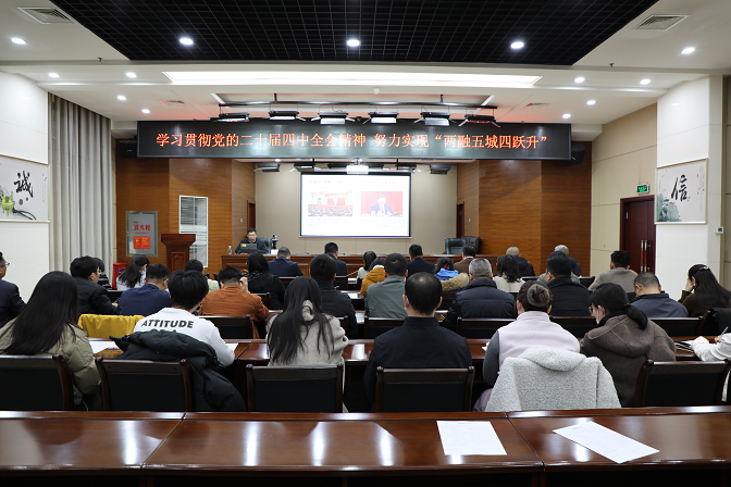 为深入贯彻党的二十届四中全会精神,把思想和行动统一到党中央决策部署上来,12月3日下午,集团组织召开了党的二十届四中全会精神宣讲报告会。此次报告会以“学习贯彻党的二十届四中全会精神 努力实现‘两融五城四跃升’”为主题,市委党校副教授崔战伟作宣讲报告。