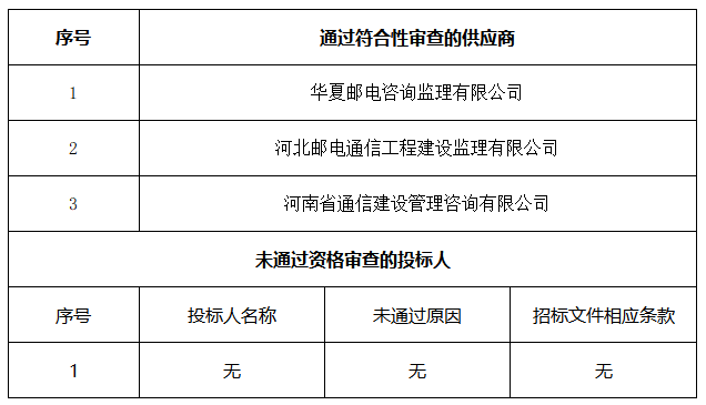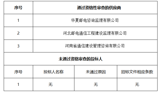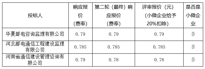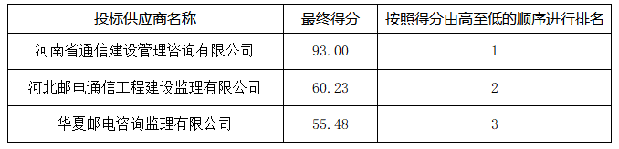 第一成交候选人:河南省通信建设管理咨询有限公司