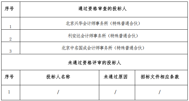 (一)中标候选人名称:利安达会计师事务所(特殊普通合伙)