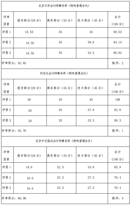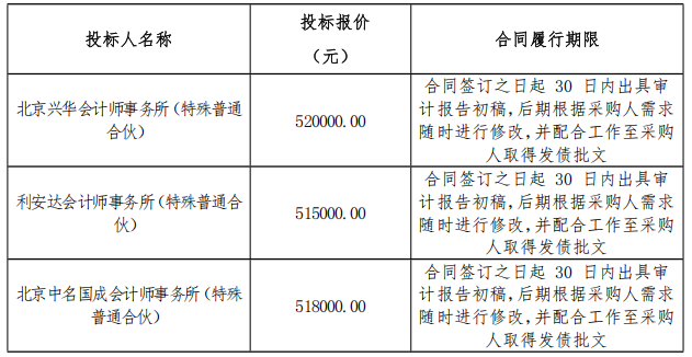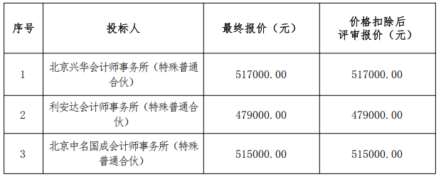 (一)中标候选人名称:北京中名国成会计师事务所(特殊普通合伙)