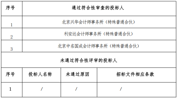 (一)中标候选人名称:北京兴华会计师事务所(特殊普通合伙)
