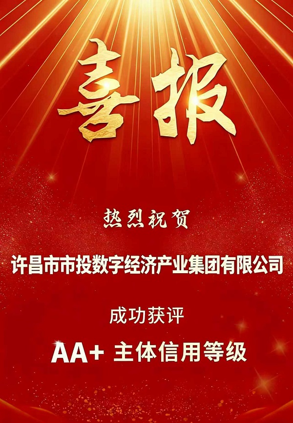 征程万里风正劲,重任千钧再出发。AA+主体信用评级的获得,既是对过往工作的肯定,更是对未来发展的鞭策。数产公司将以此为新起点,锚定市委、市政府数字经济枢纽之城战略发展目标,坚守国企使命、勇担发展重任,深耕数字经济主航道,以数智赋能产业升级,以信用铸就企业品牌,以奋进姿态拓展新兴市场,助力许昌构建现代化产业体系、培育新质生产力,为区域产业转型升级和高质量发展贡献更大力量。